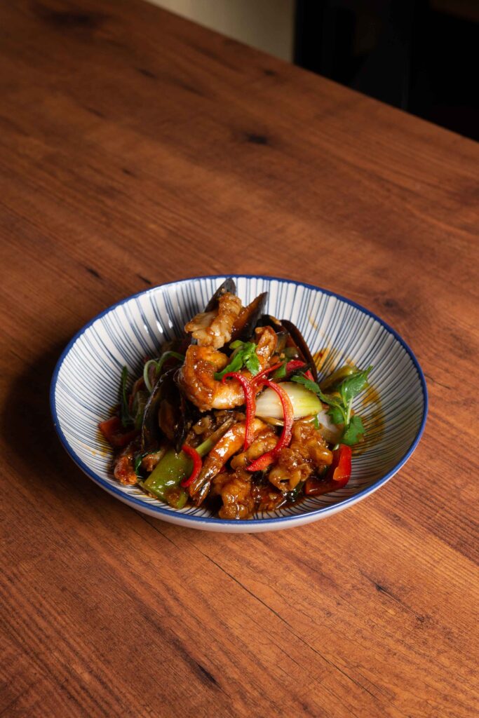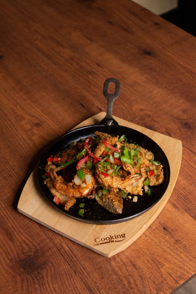 Fructe de mare trase în unt cu piper servite în tigaie fierbinte – Seafood butter and pepper in hot pan