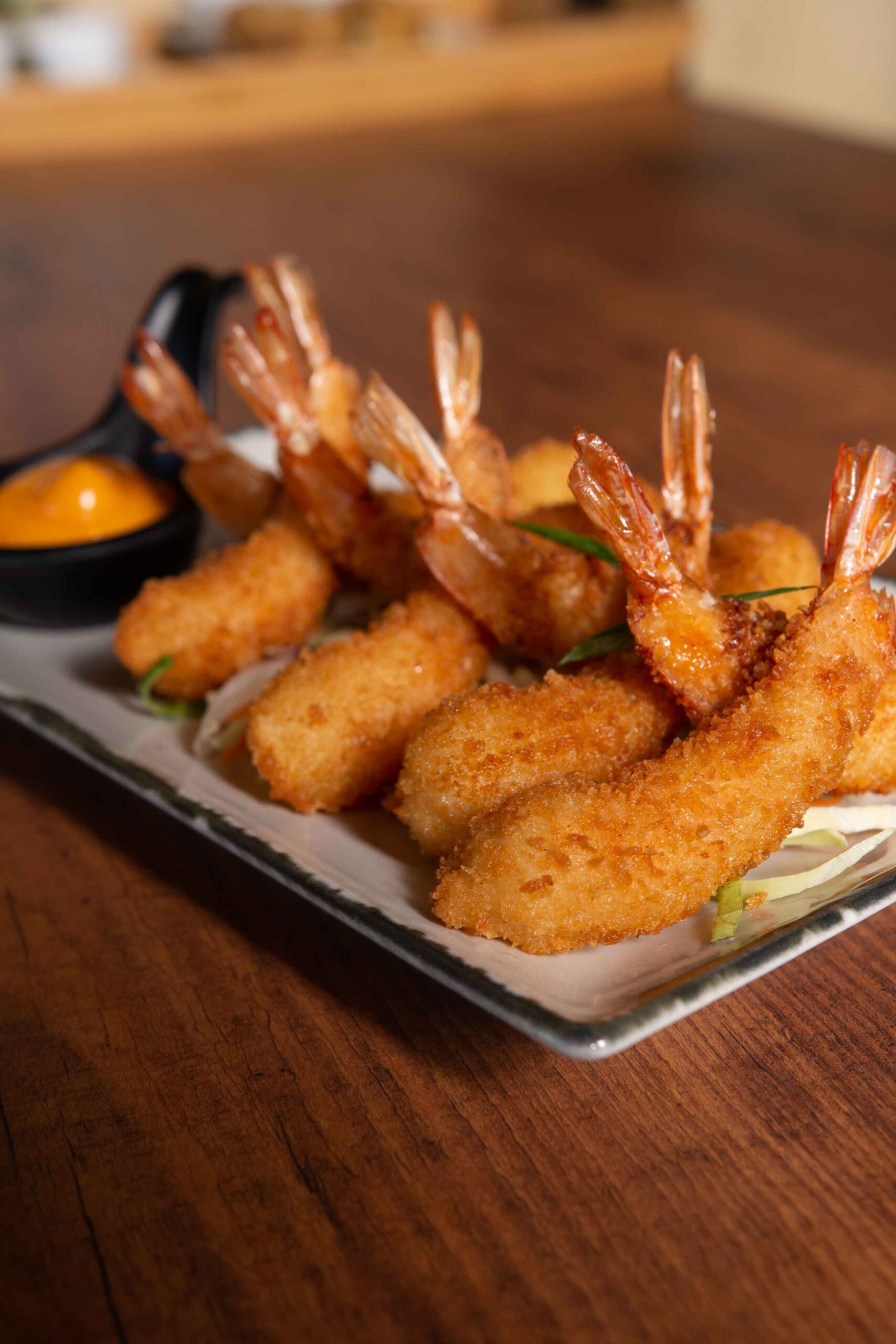 Creveți, pesmet panko, chilli thailandez, ulei de susan, oțet de orez. Maioneză conține gălbenuș de ou și muștar. 250g Alergeni: 1, 2, 3, 10, 11