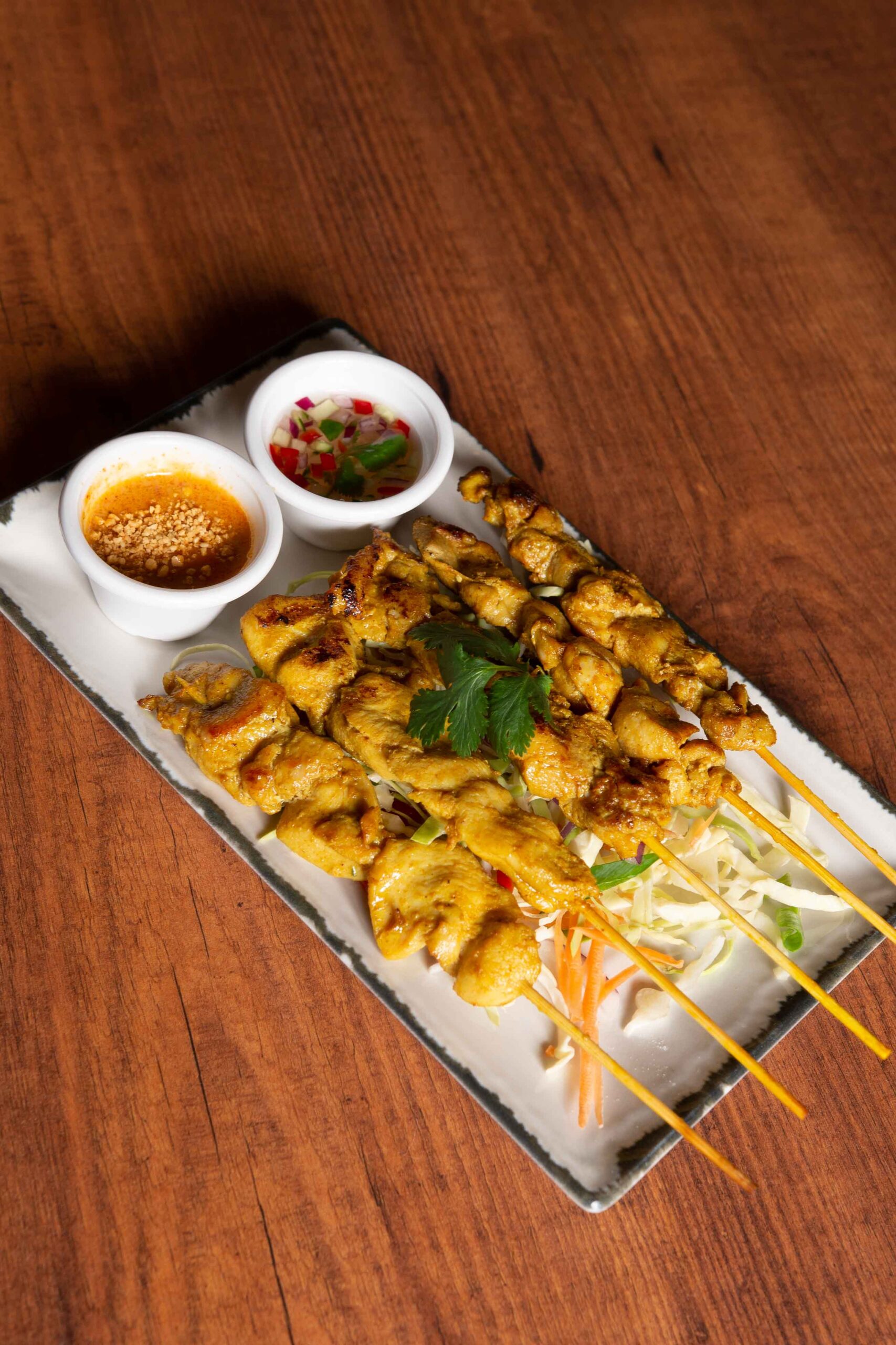 Carne de pui / porc, castravete, ceapă roșie, chilli , coriandru, turmeric. Se servește cu sos de alune și sos Ajard. GLUTEN FREE 200 gr Alergeni: 5, 8