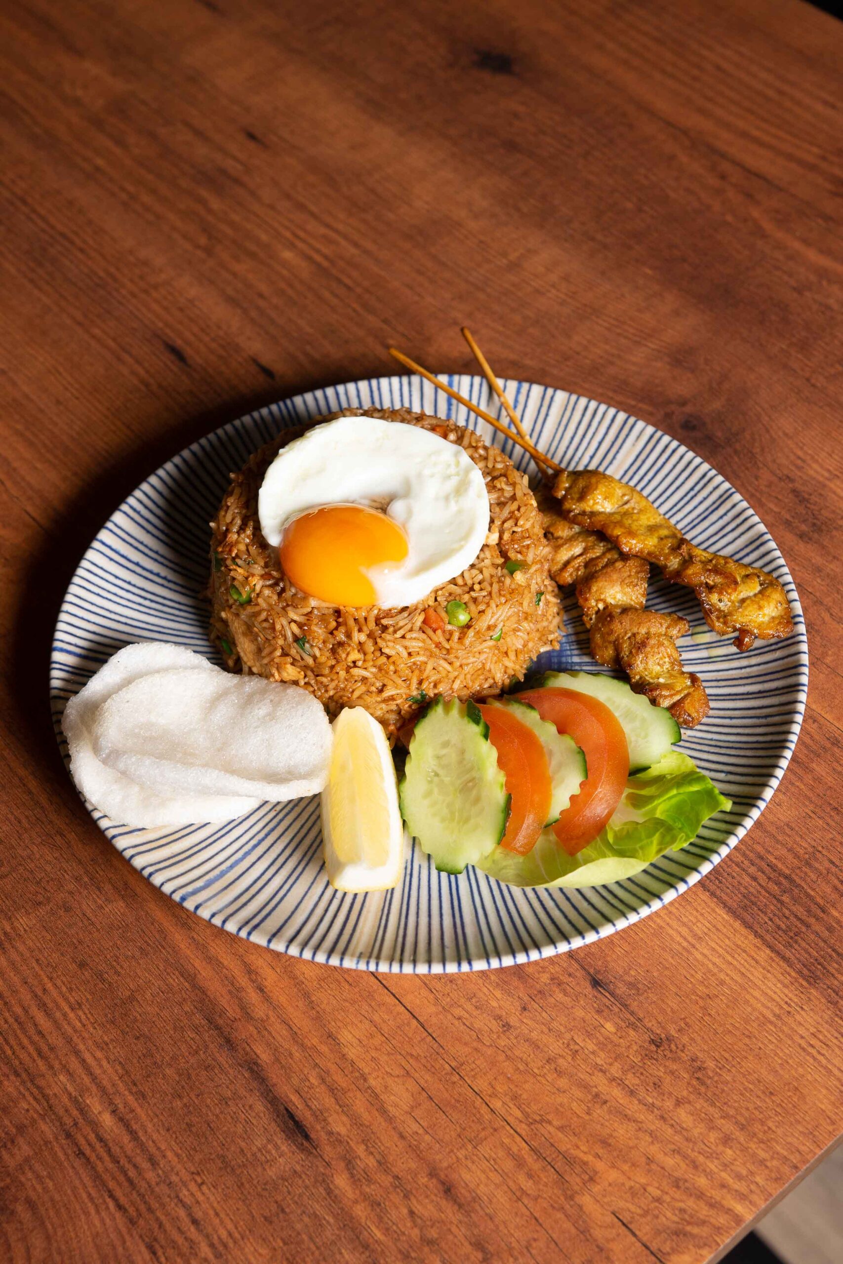 Orez indonezian cu satay de pui / porc / creveți – Nasi goreng with satay chicken / pork / shrimps