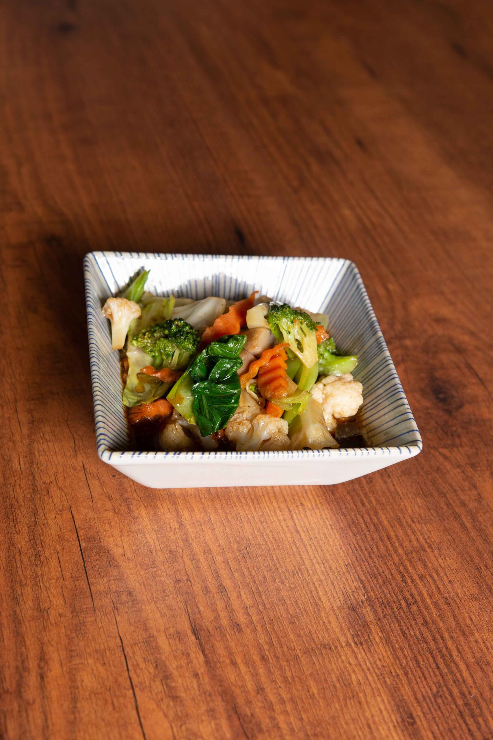 Legume cu texturi perfecte- crocante dar gătite, cu culori vibrante păstrate intacte și arome naturale accentuate subtil de condimentele asiatice. Acest side dish oferă echilibrul perfect de culoare, textură și nutrienți lângă preparatele proteice mai consistente din meniu.